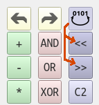 Bit operations like Rotate left/right and 1’s and 2’s complement applies only to this “active” value as well.