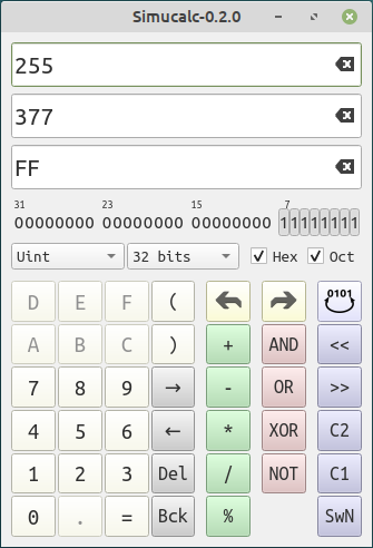 Simucalc is a simple programmer’s calculator.