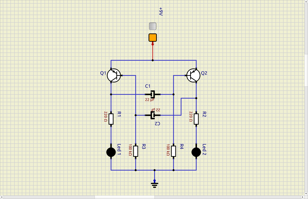 This is my first working creation, it is an alternating LED flasher from page 200 of the Encyclopedia of Electronic Circuits, volume 3.