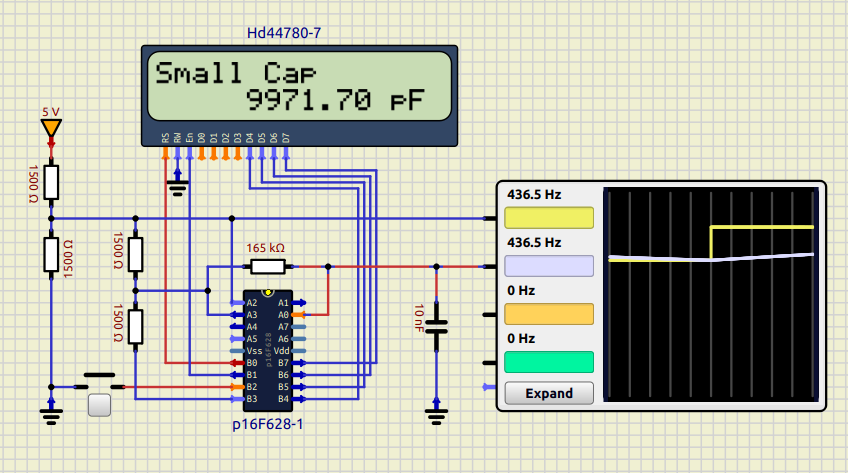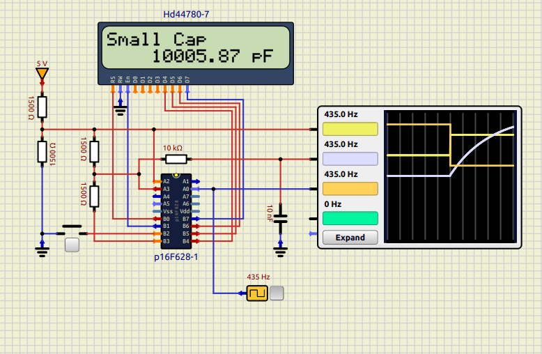 If you feed 435 Hz directly to RA0 then you get 10000 pF in the LCD: