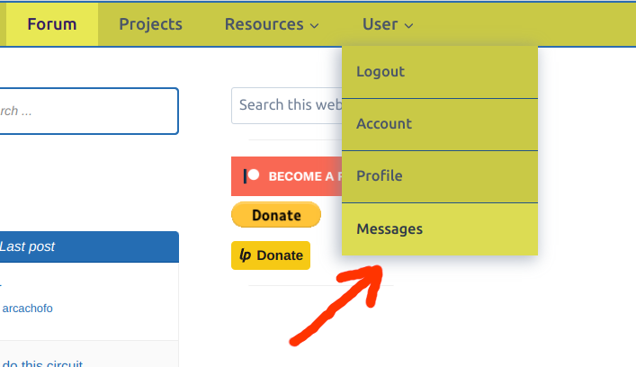 There is a new entry in "User" menu to access your messages: