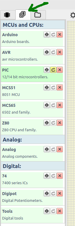 Quote from feri on December 16, 2025, 10:08 pmWhen I start SimulIDE the items Arduino - Avr - Etc.. do not appear in the menu, by right-clicking and selecting "manage component" I put the check mark on Arduino - Avr and also the other items under "Micro" the items appear in the menu but the Avr - Pic - Msc65 - Shields menus do not expand and the others I51 - Z80 - STM32 - Espressif do not drag into the diagram the pointer becomes a hand with a crossed out circle.