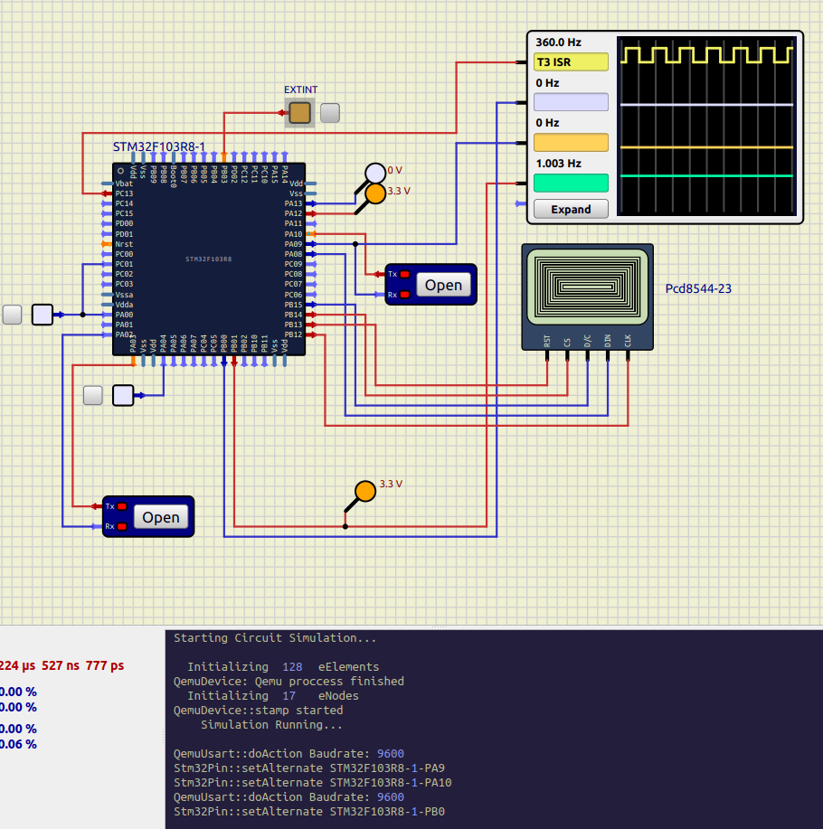 I have been working to implement Qemu STM32 inerface to SimulIDE, as it seems simpler to me than Esp32.