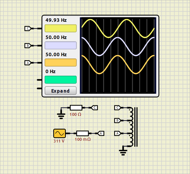 I tried to simulate a circuit which has a transformer having three coils in series. Their turns are 93, 32 and 53 respectively.