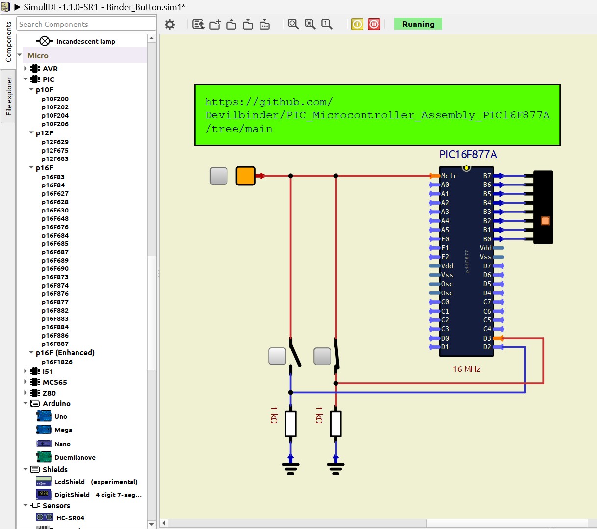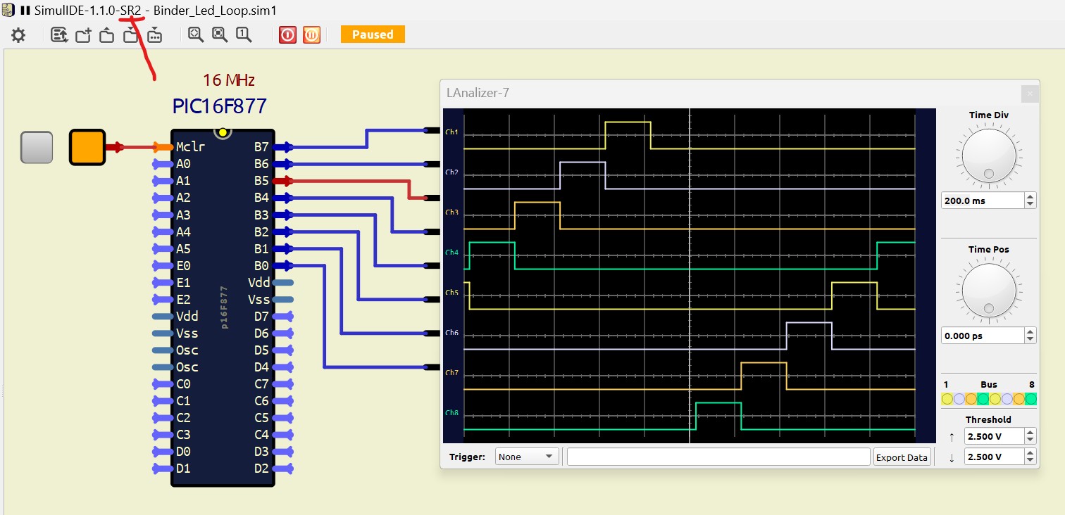 Project Setup 馃數 PIC16F877A PIC Microcontroller Assembly Tutorial #2 MPLAB X pic-as mpasmSince I did not get it to work in Simulide while it did work with real hardware I asked Copilot its opinion and it said: